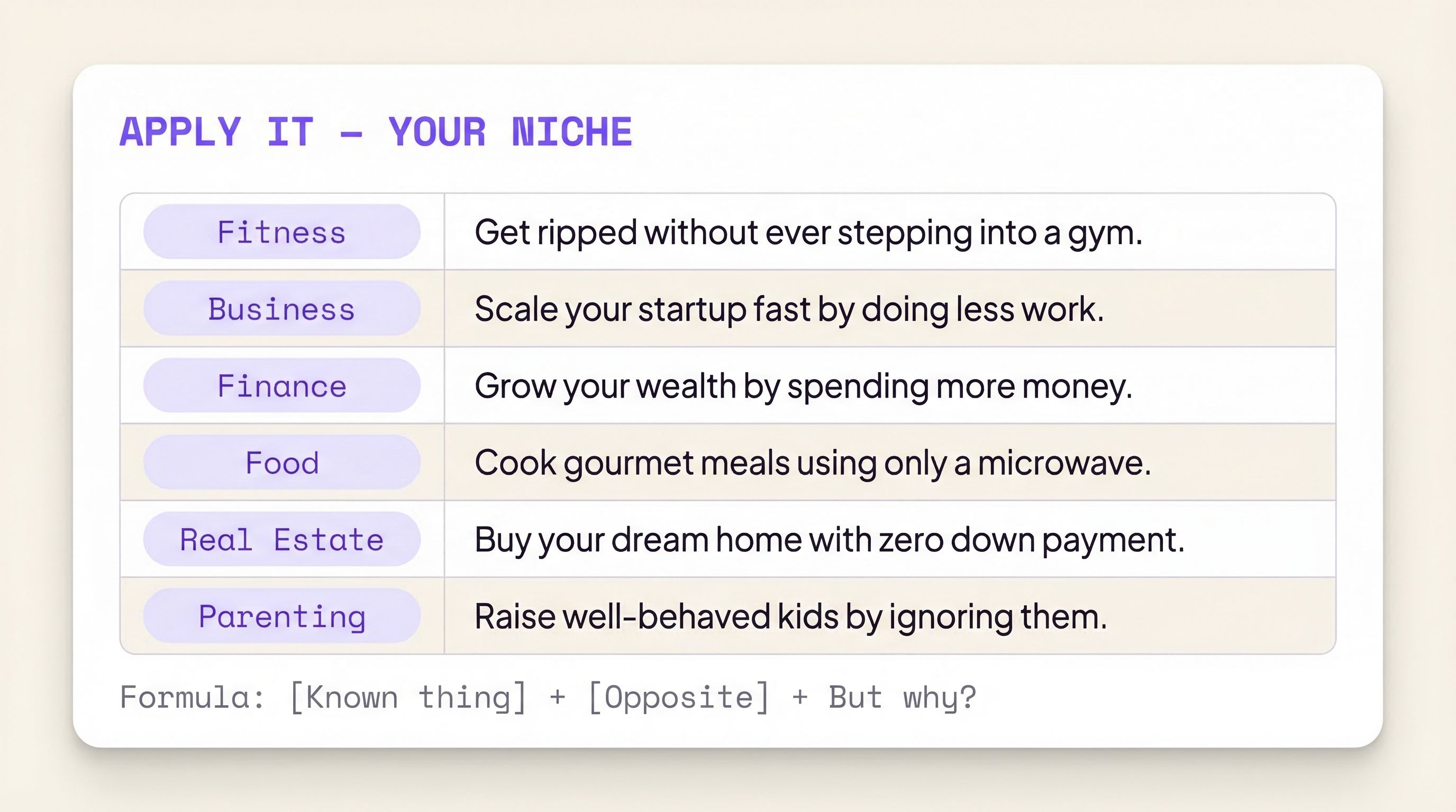 Formula: [thing your audience knows] + [the opposite you're about to prove] + "But why?"
